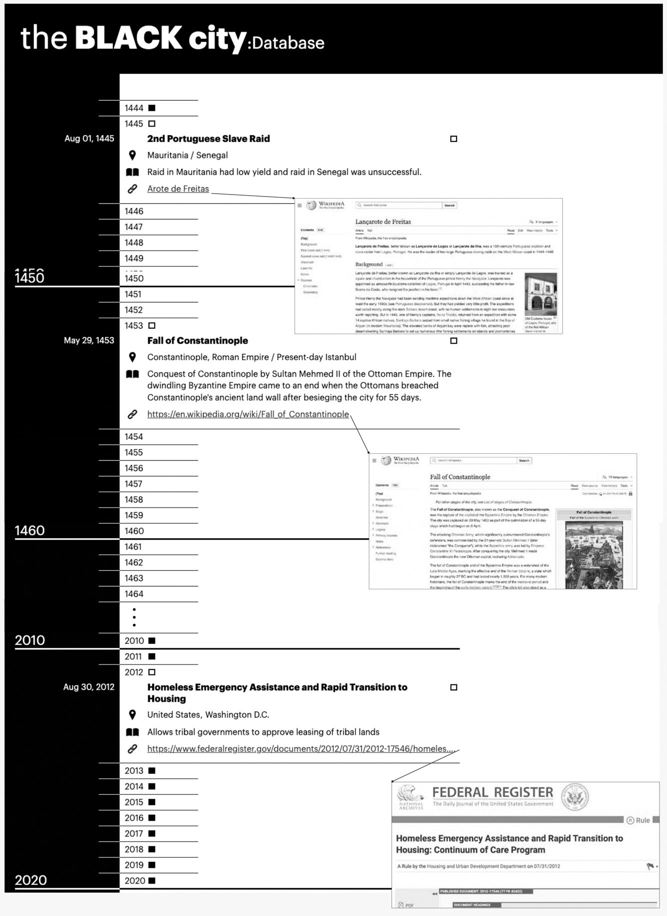 Role: Design and development of the digital database and its online website. The database documents the multiple spatial displacements of race and gender from the 15th century to the present. The physical installation is a data physicalization of the underlying events and spatial movements. It is a space-time visualization consisting of a 3-D physical sculpture that acts as a map and a 24-hour cycle of video narratives.